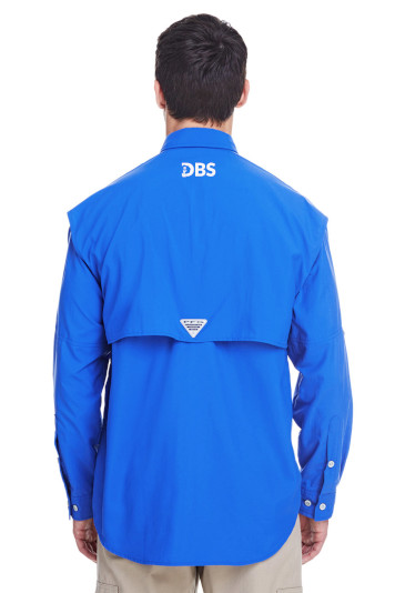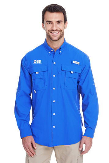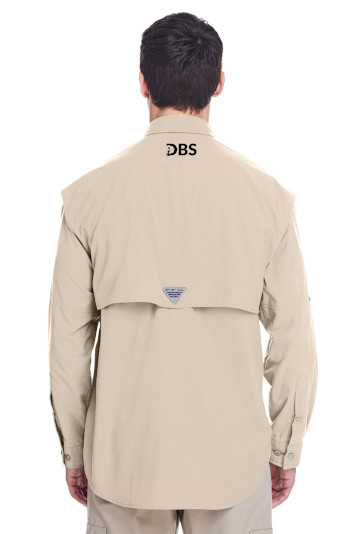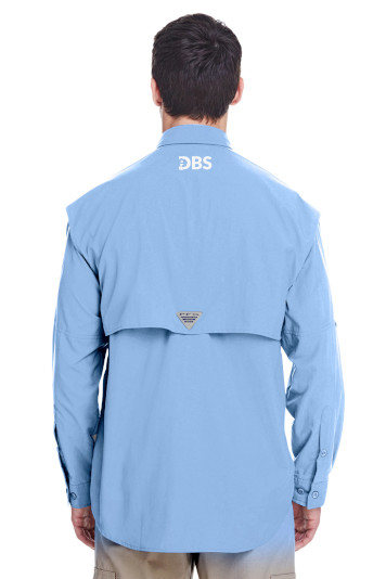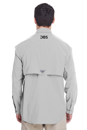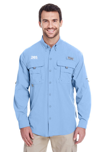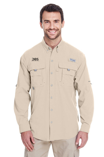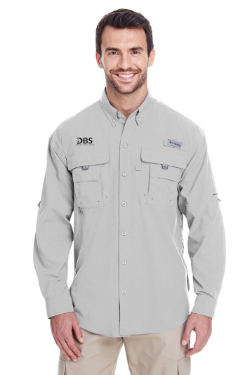 Columbia PFG logo patch on rod holder on left chest